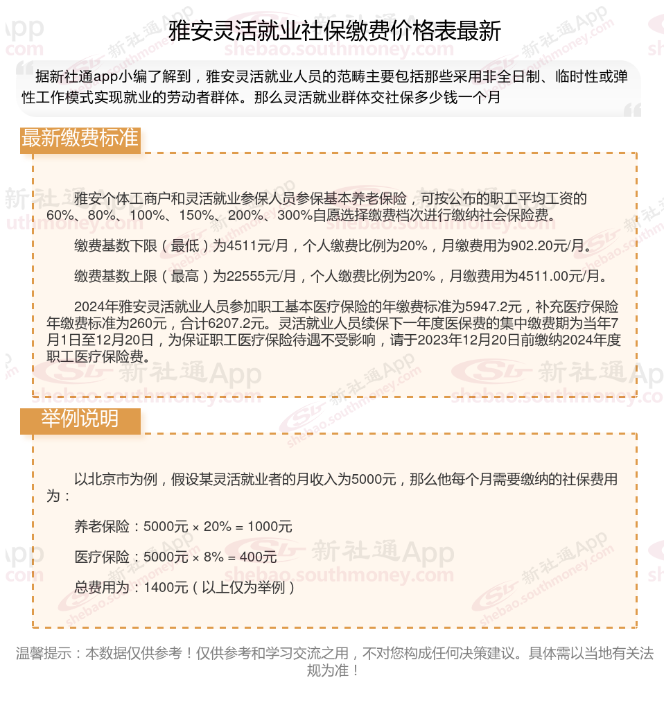 二、雅安2024年灵活就业社保缴费基数及比例最新消息