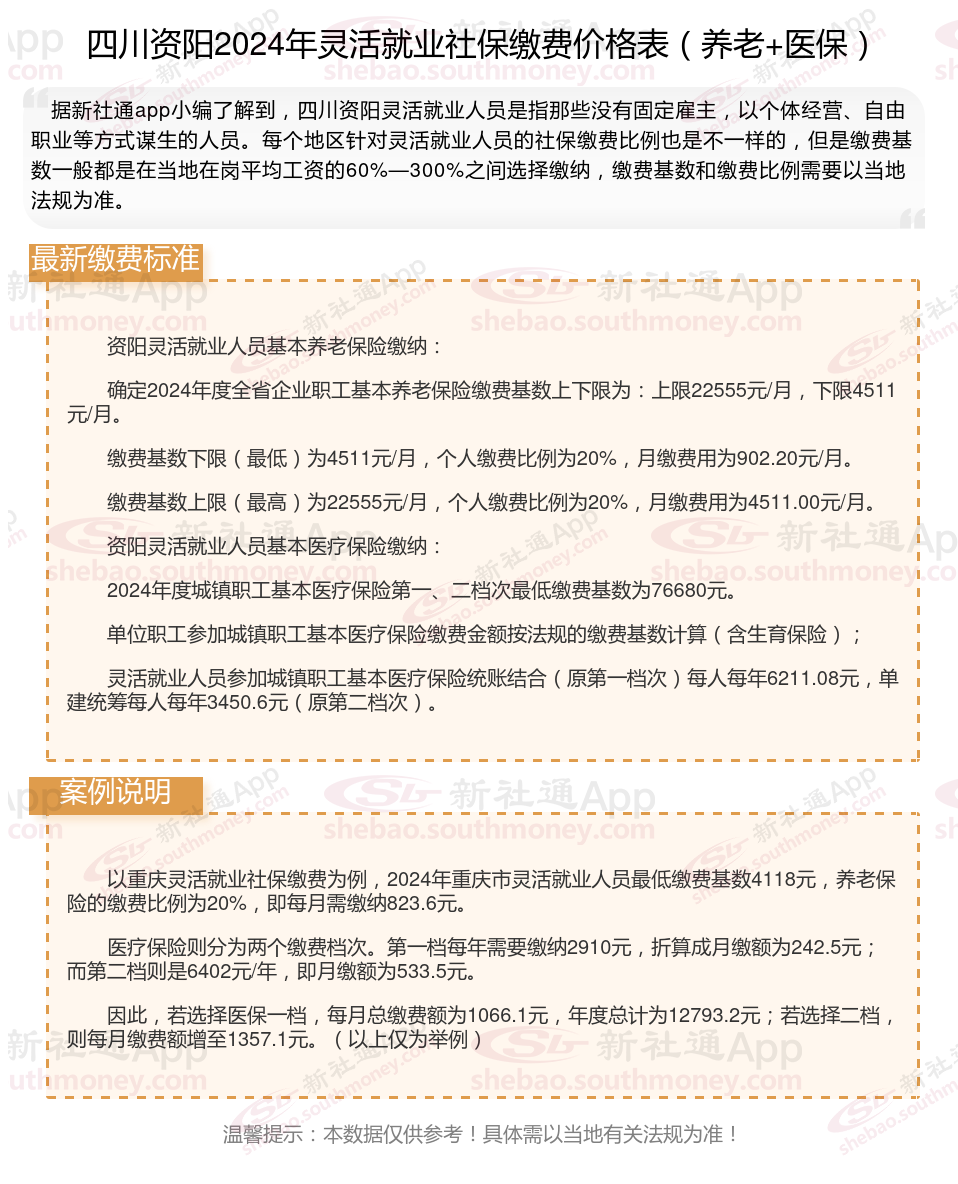 一、2024年四川资阳灵活就业社保缴费标准表 四川资阳灵活就业社保多少钱一个月?