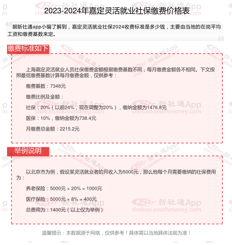 二、嘉定2024年灵活就业社保缴费基数、比例最新消息