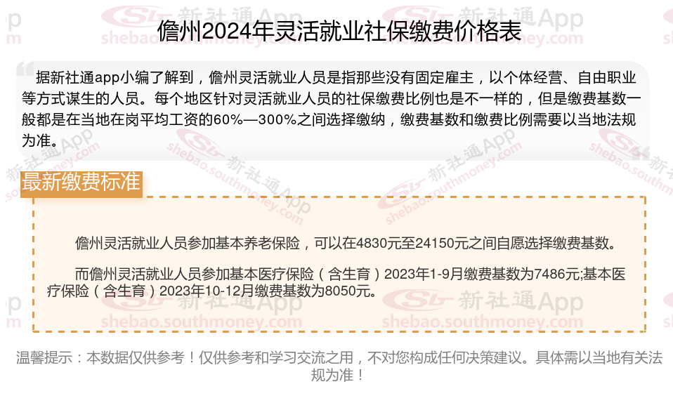 二、儋州2024年灵活就业社保缴费基数及比例最新消息