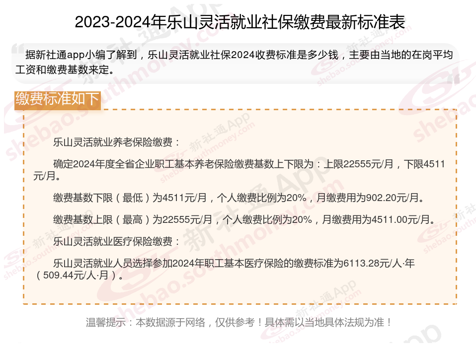一、2024年乐山灵活就业社保缴费标准表 乐山灵活就业社保多少钱一个月?