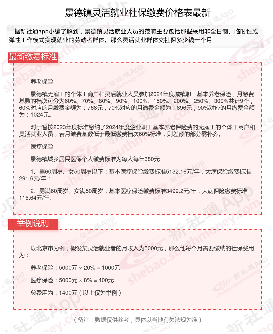 一、2024年景德镇灵活就业社保缴费标准表 景德镇灵活就业社保多少钱一个月?