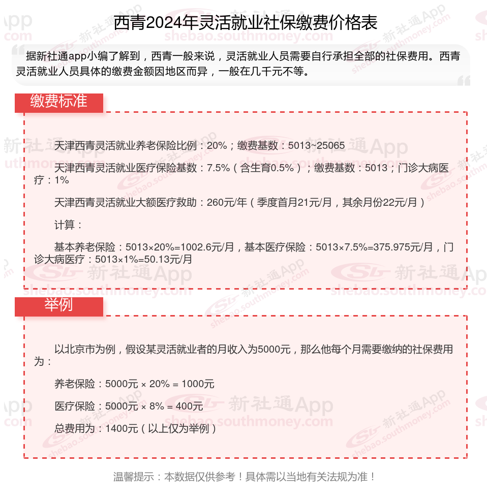 一、2024年西青灵活就业社保缴费标准表 西青灵活就业社保多少钱一个月?