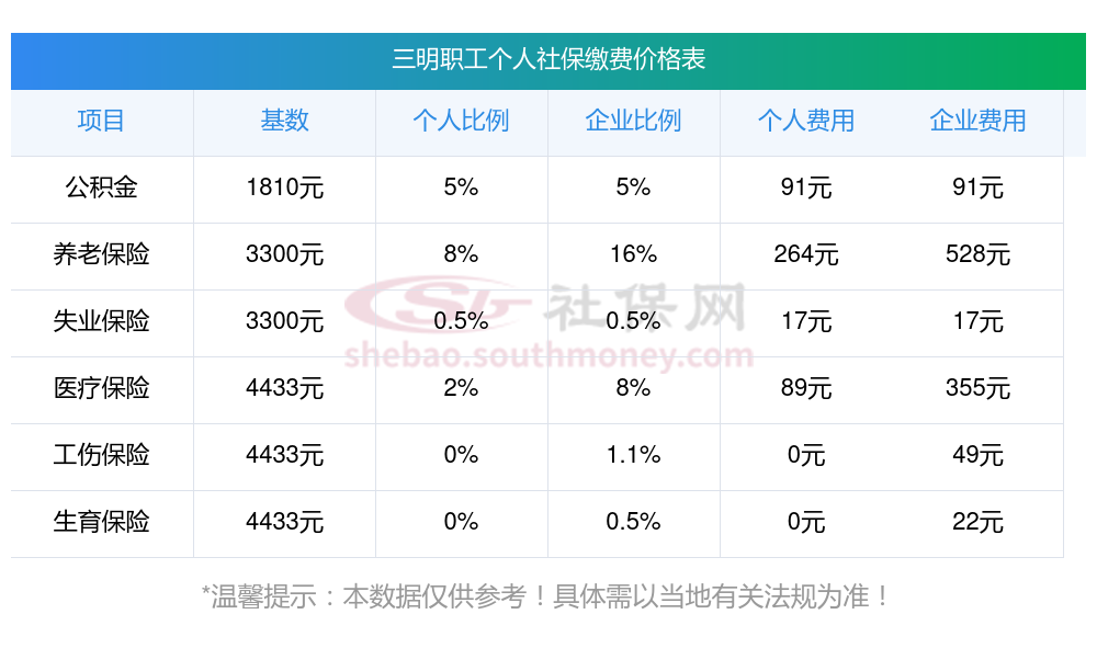 二、三明职工社保缴费基数是多少钱一个月?职工社保缴纳标准是多少?