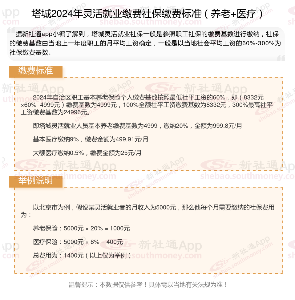 一、2024年塔城灵活就业社保缴费标准表 塔城灵活就业社保多少钱一个月?