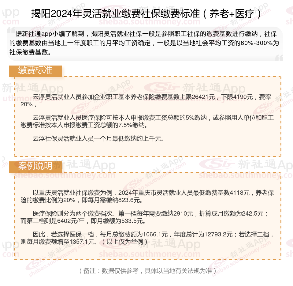 一、2024年揭阳灵活就业社保缴费标准表 揭阳灵活就业社保多少钱一个月?