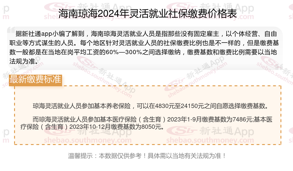 一、2024年海南琼海灵活就业社保缴费标准表 海南琼海灵活就业社保多少钱一个月?