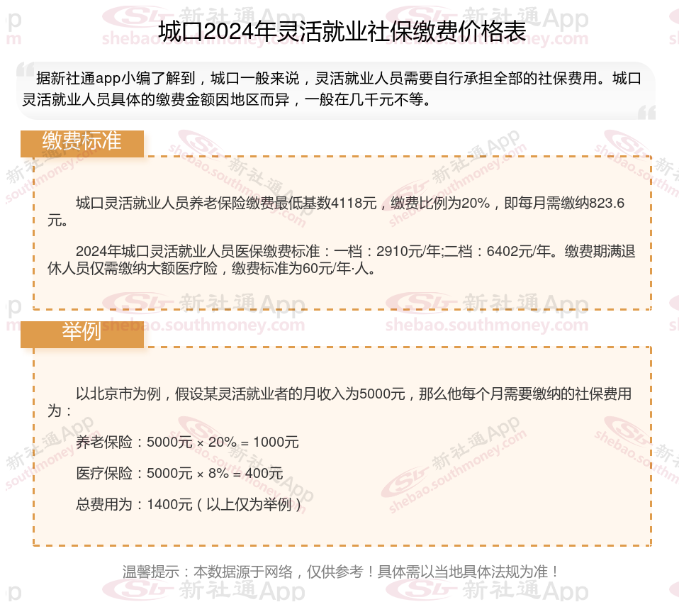 对于灵活就业者来说,社保缴纳是一个非常重要的问题。那么,2024年城口灵活就业社保怎么交?一个月要交多少呢?领取待遇如何计算的?接下来随新社通APP小编一起了解城口灵活就业社保缴费具体详情吧。