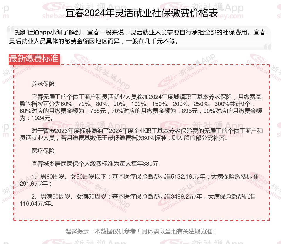 一、2024年宜春灵活就业社保缴费标准表 宜春灵活就业社保多少钱一个月?