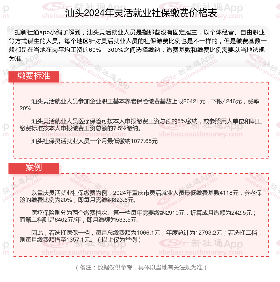 二、汕头2024年灵活就业社保缴费基数及比例最新消息