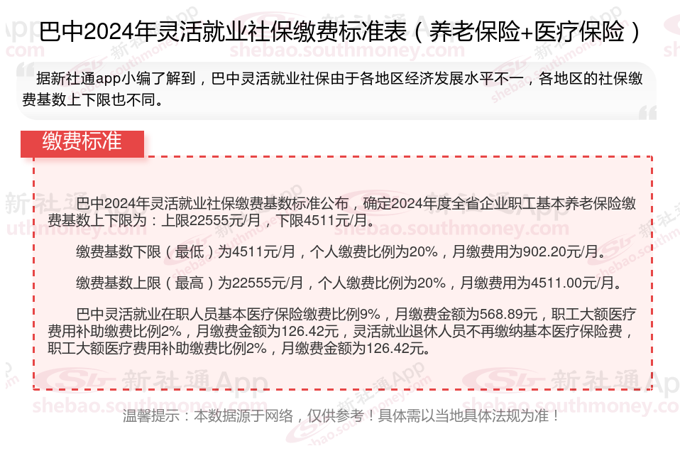 一、2024年巴中灵活就业社保缴费标准表 巴中灵活就业社保多少钱一个月?