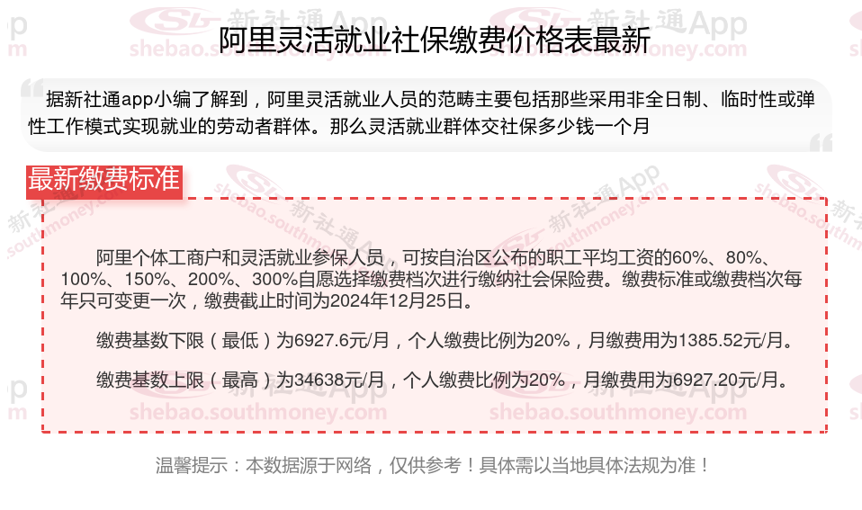一、2024年阿里灵活就业社保缴费标准表 阿里灵活就业社保多少钱一个月?