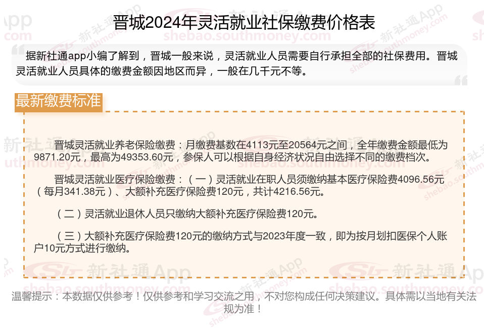 一、2024年晋城灵活就业社保缴费标准表 晋城灵活就业社保多少钱一个月?