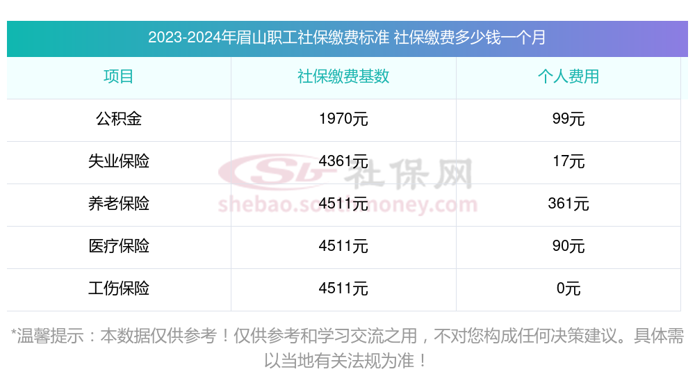 2024年眉山社保缴费多少钱?下表是2023-2024年眉山社保费用明细参考,新社通app-社保缴费查询工具提供的最新数据如下: