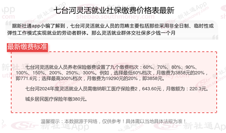 二、七台河2024年灵活就业社保缴费基数、比例最新消息