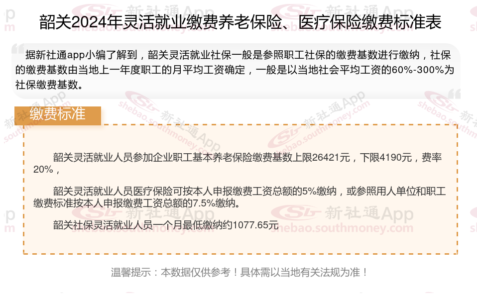 一、2024年韶关灵活就业社保缴费标准表 韶关灵活就业社保多少钱一个月?