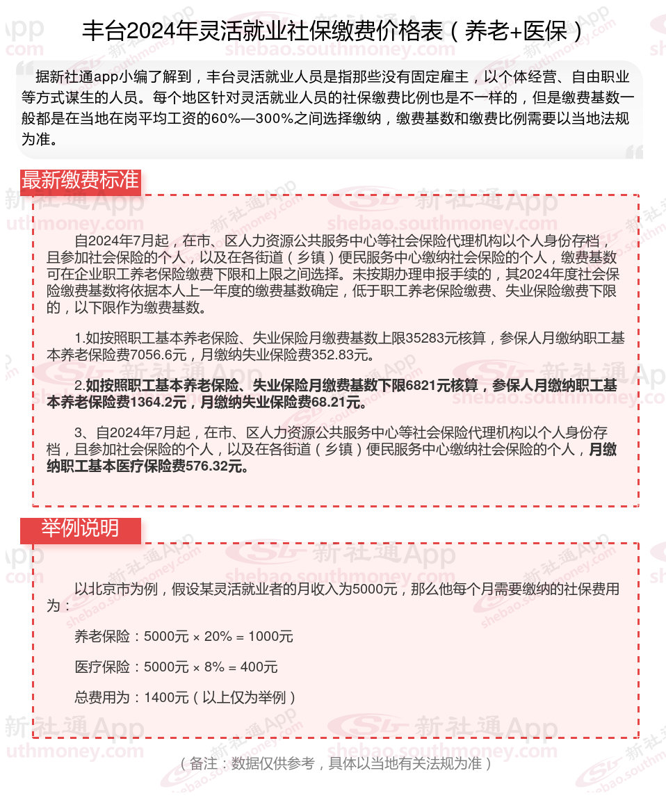 二、丰台2024年灵活就业社保缴费基数及比例最新消息