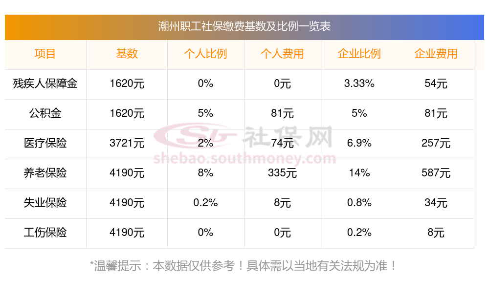 据新社通app小编了解到,2023-2024年潮州社保缴费基数参照为3579.00,潮州社保缴费明细如下:
