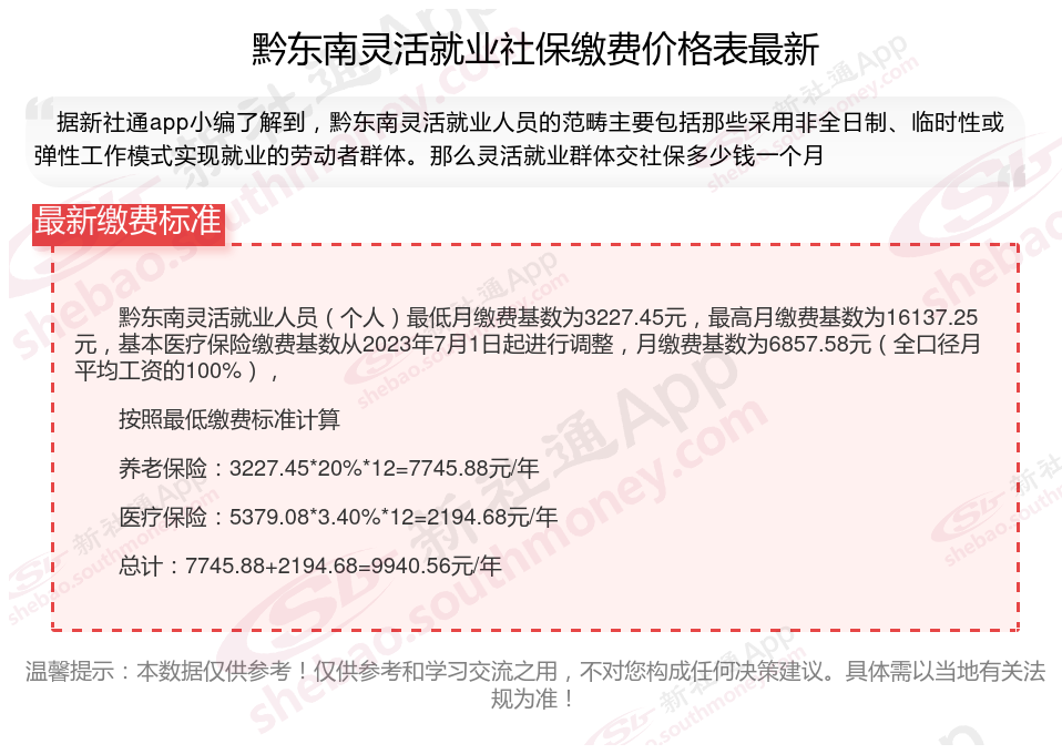 一、2024年黔东南灵活就业社保缴费标准表 黔东南灵活就业社保多少钱一个月?