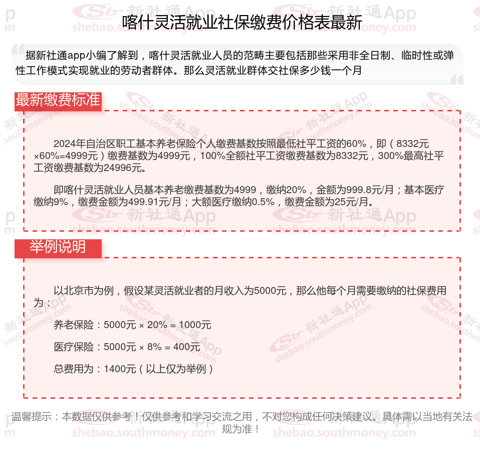 一、喀什灵活就业社保缴费基数及比例最新消息