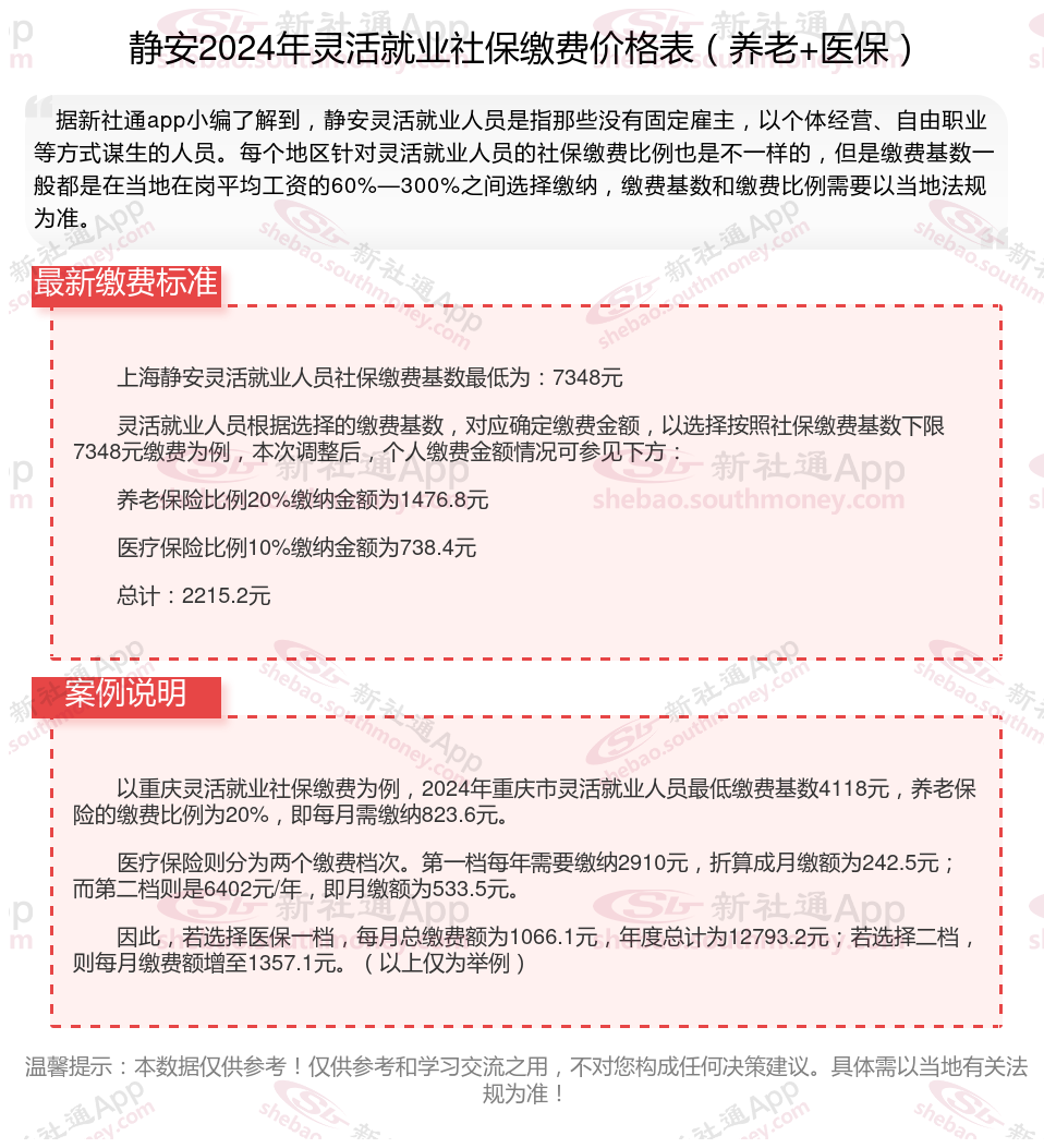 二、2024年静安灵活就业社保缴费标准是多少钱,最新如下: