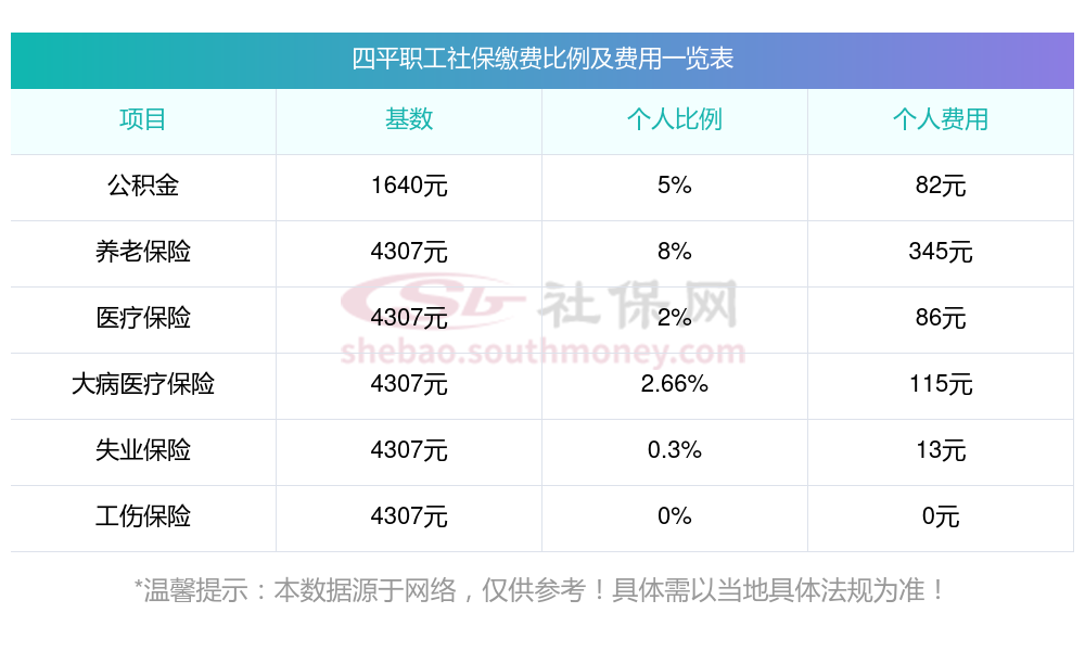 (四平社保最低一个月要交多少钱)四平社保费用明细最新如下: