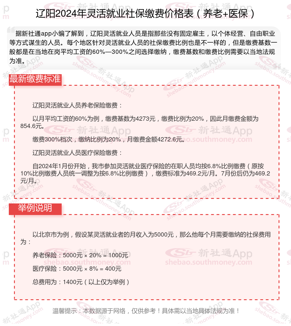 一、2024年辽阳灵活就业社保缴费标准表 辽阳灵活就业社保多少钱一个月?