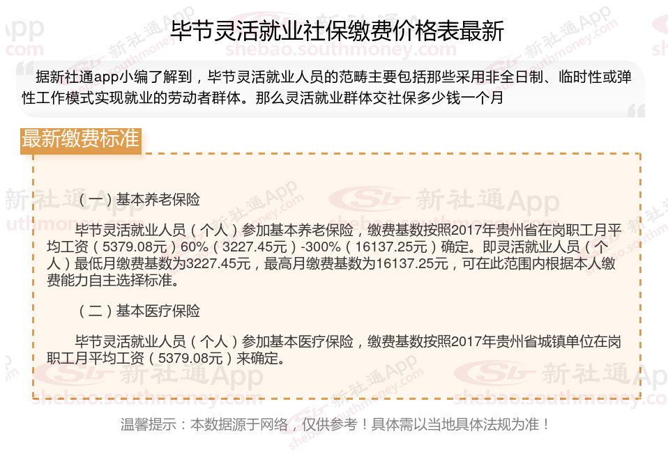 一、2024年毕节灵活就业社保缴费标准表 毕节灵活就业社保多少钱一个月?