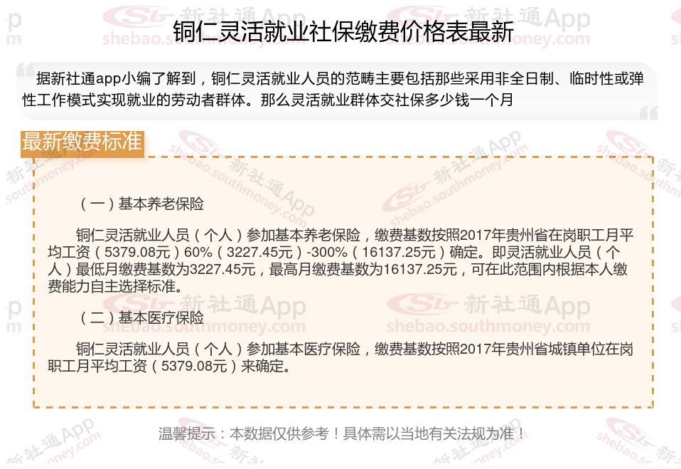 二、铜仁2024年灵活就业社保缴费基数、比例最新消息