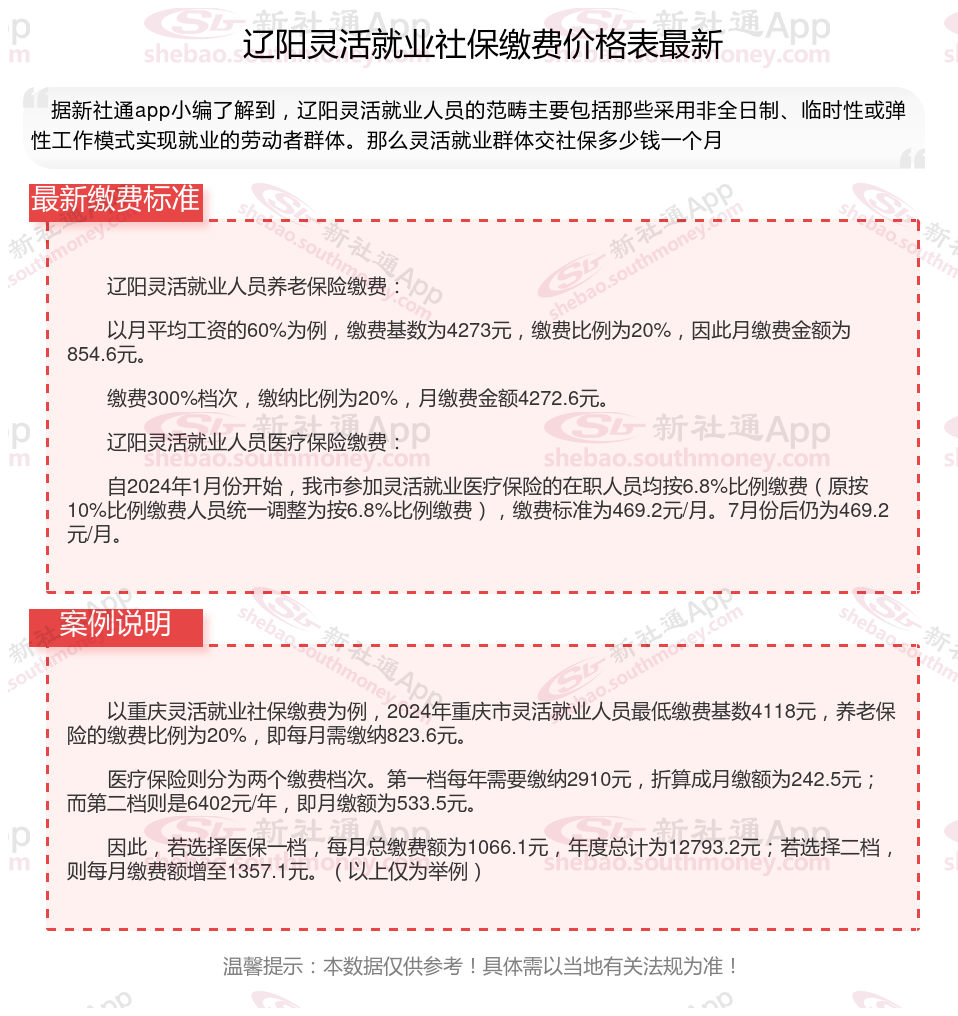 以上就是辽阳灵活就业社保缴费的全部内容,数据及内容供参考!希望对你有帮助,欢迎关注新社通解锁更多社保专业资讯。