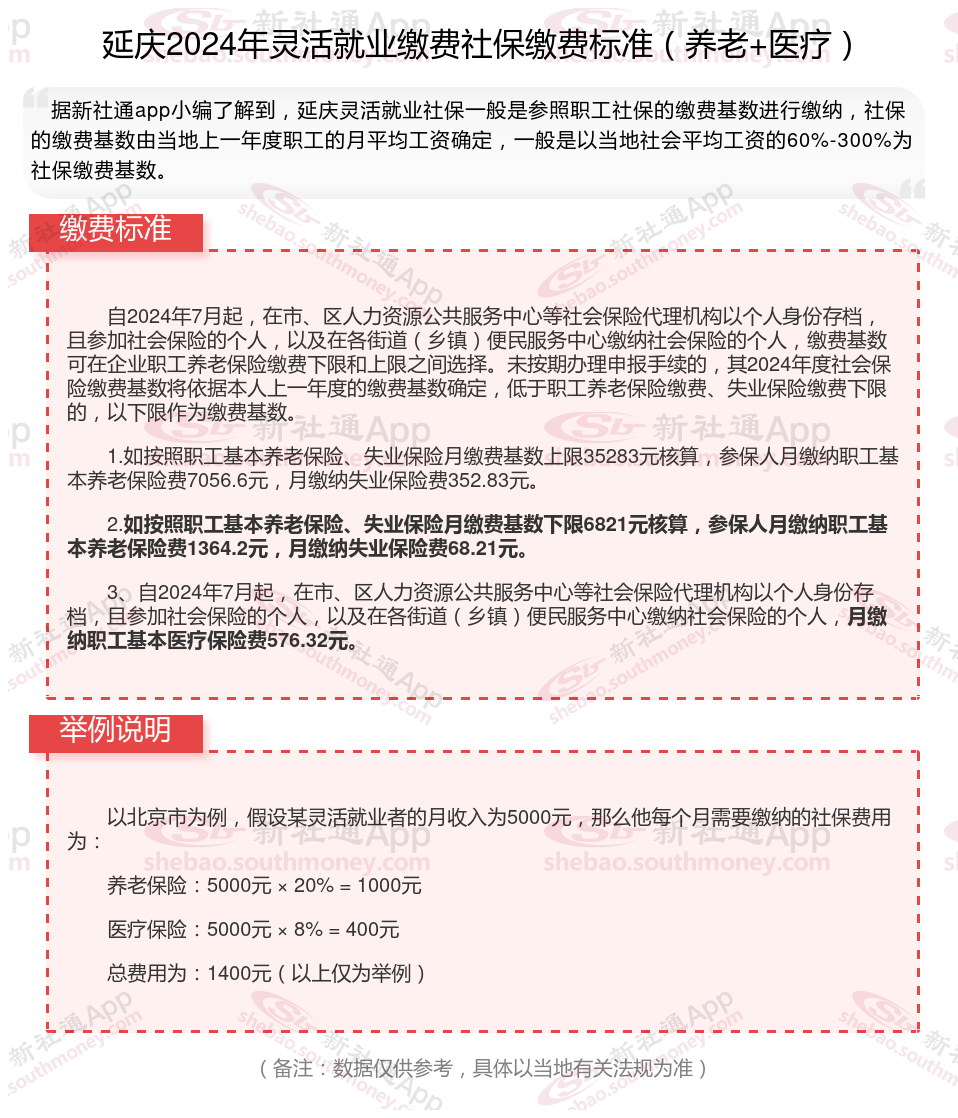 一、2024年延庆灵活就业社保缴费标准表 延庆灵活就业社保多少钱一个月?