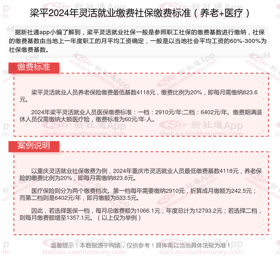二、梁平2024年灵活就业社保缴费基数及比例最新消息