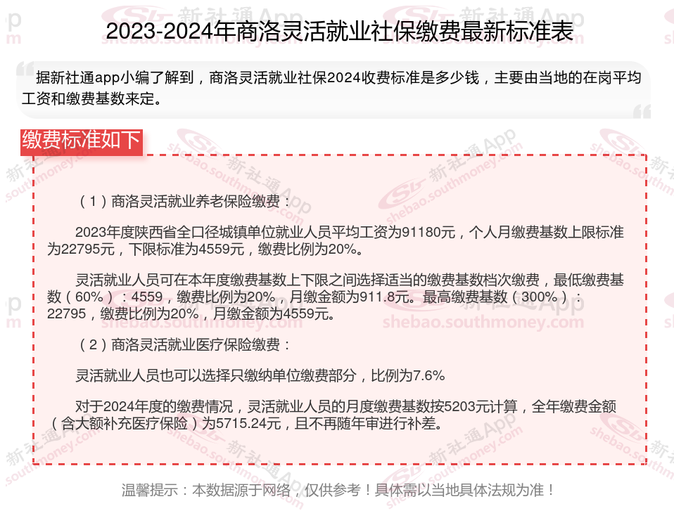 二、商洛2024年灵活就业社保缴费基数及比例最新消息