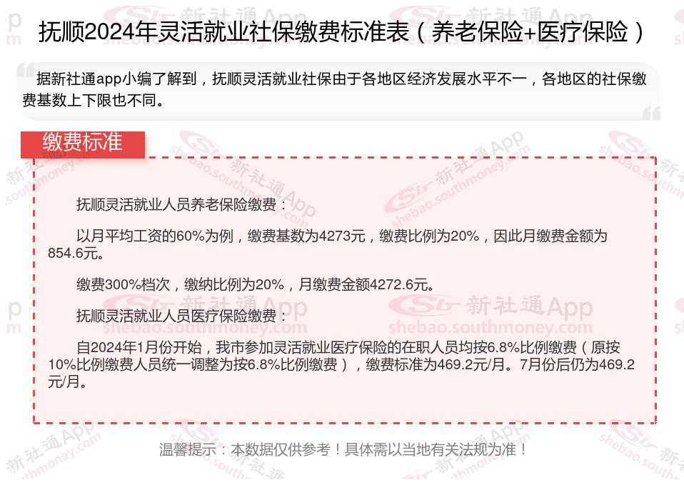 二、抚顺2024年灵活就业社保缴费基数、比例最新消息