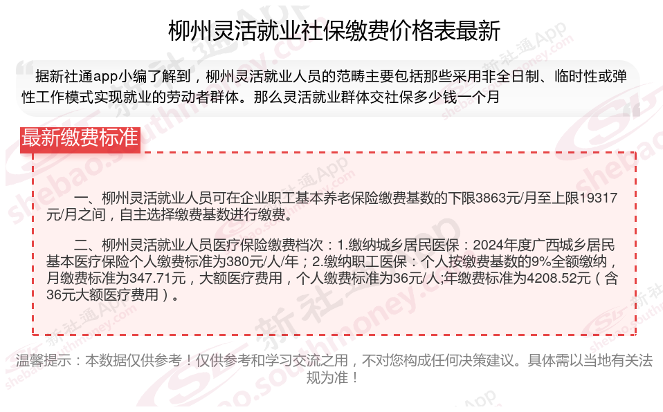 二、柳州2024年灵活就业社保缴费基数、比例最新消息