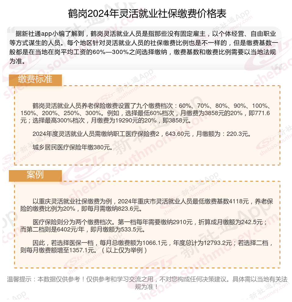 二、鹤岗2024年灵活就业社保缴费基数、比例最新消息