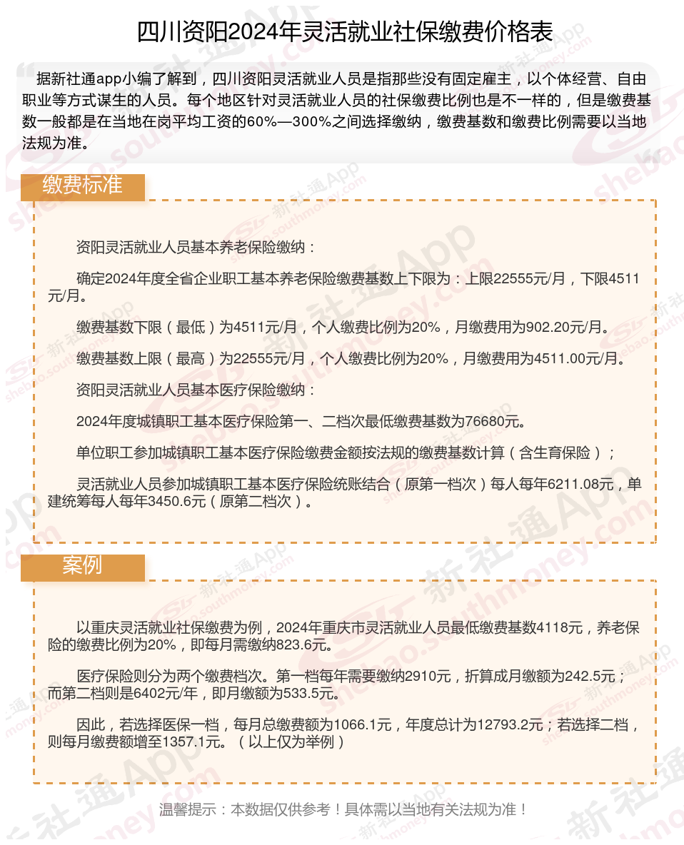 一、2024年四川资阳灵活就业社保缴费标准表 四川资阳灵活就业社保多少钱一个月?
