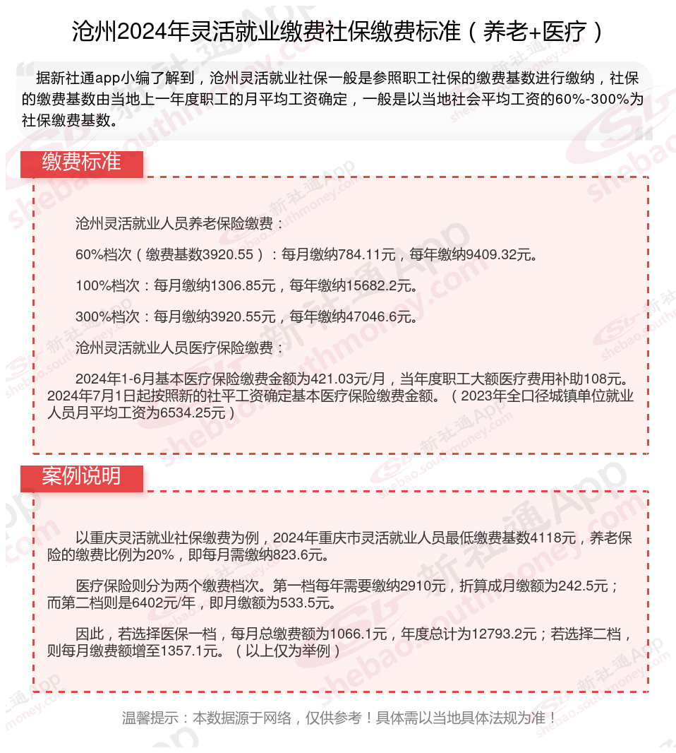 二、沧州2024年灵活就业社保缴费基数及比例最新消息