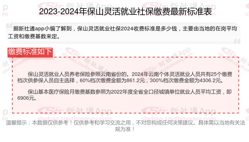 一、2024年保山灵活就业社保缴费标准表 保山灵活就业社保多少钱一个月?