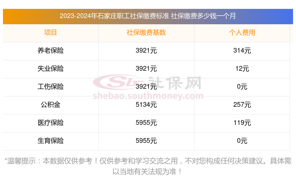 二、石家庄职工社保缴费多少钱一个月,2023-2024年职工和公司社保各交多少钱?