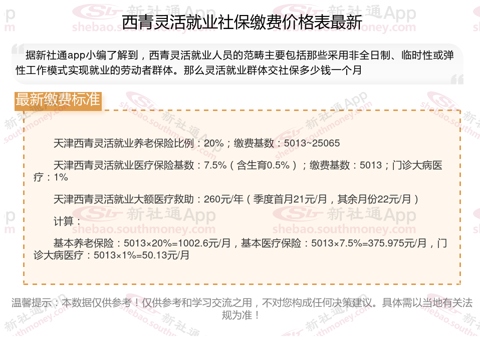 一、2024年西青灵活就业社保缴费标准表 西青灵活就业社保多少钱一个月?