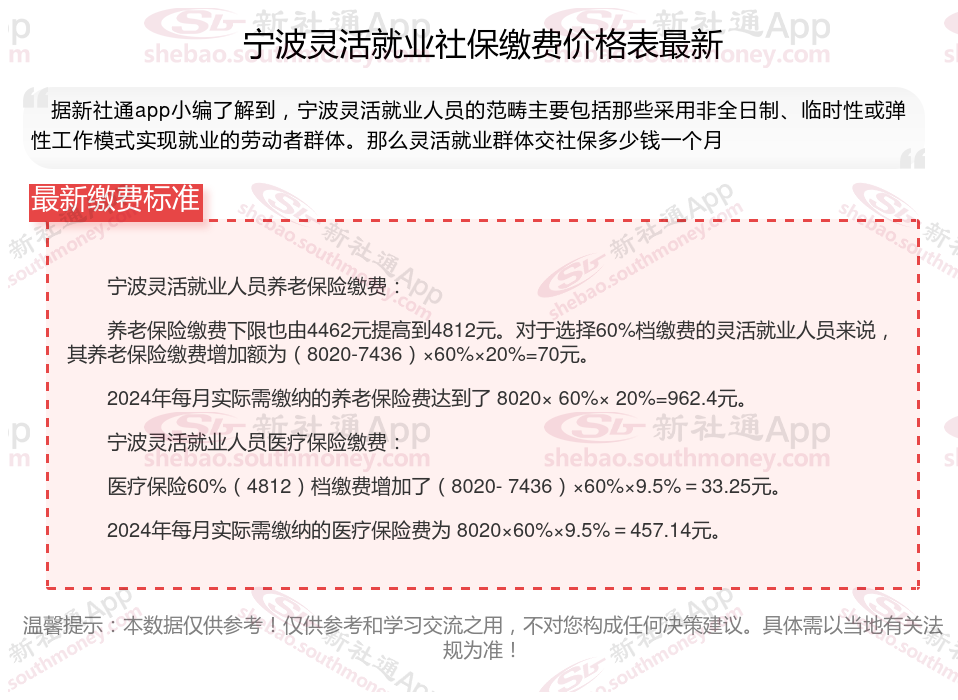 一、2024年宁波灵活就业社保缴费标准表 宁波灵活就业社保多少钱一个月?