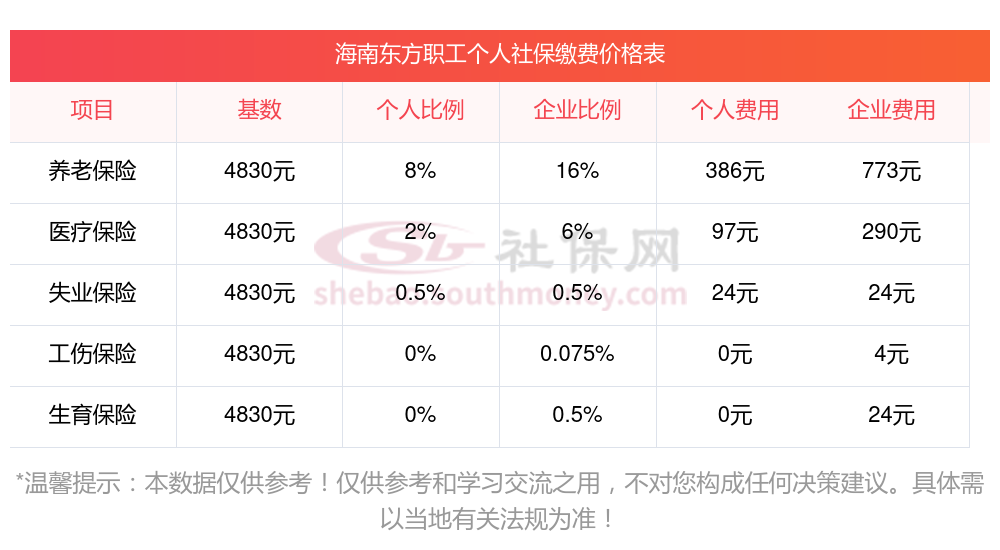 一、海南东方职工社保缴费基数是多少钱一个月?职工社保缴纳标准是多少?