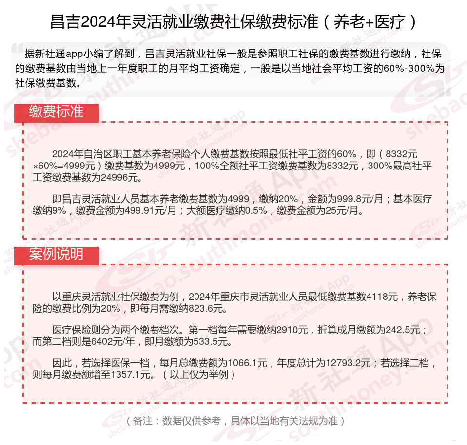 二、昌吉2024年灵活就业社保缴费基数、比例最新消息