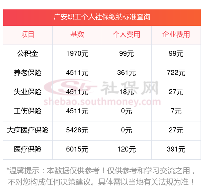 2024年广安社保缴费多少钱?下表是2023-2024年广安社保费用明细参考,新社通app-社保缴费查询工具提供的最新数据如下: