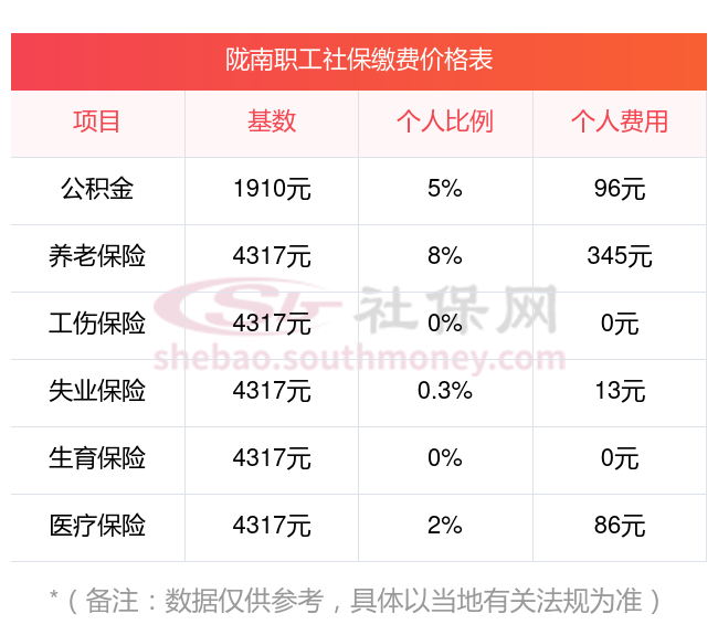 据新社通app显示,陇南社保缴费基数2023-2024年最新消息,陇南职工社保缴费详情如下: