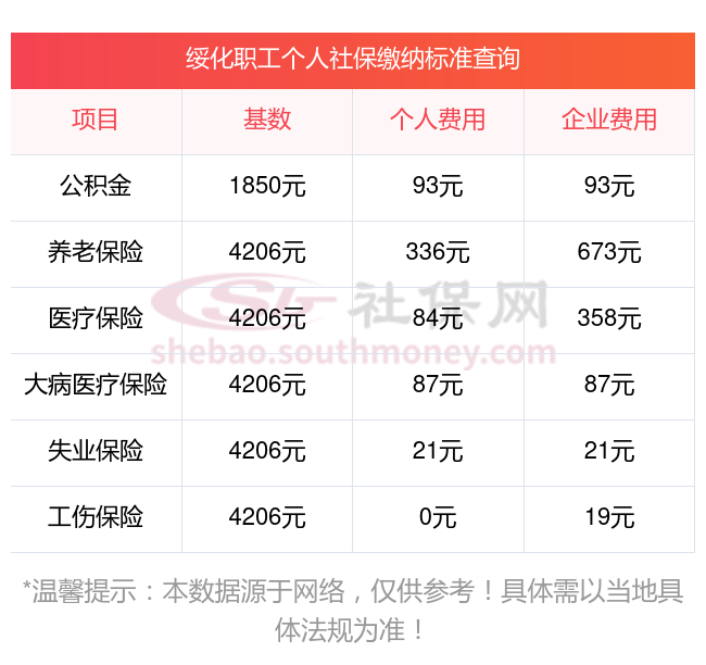 绥化缴费社保比例一览 社保公司和个人各交多少?下表是2023-2024年绥化社保费用明细参考,新社通app-社保缴费查询工具提供的最新数据如下: