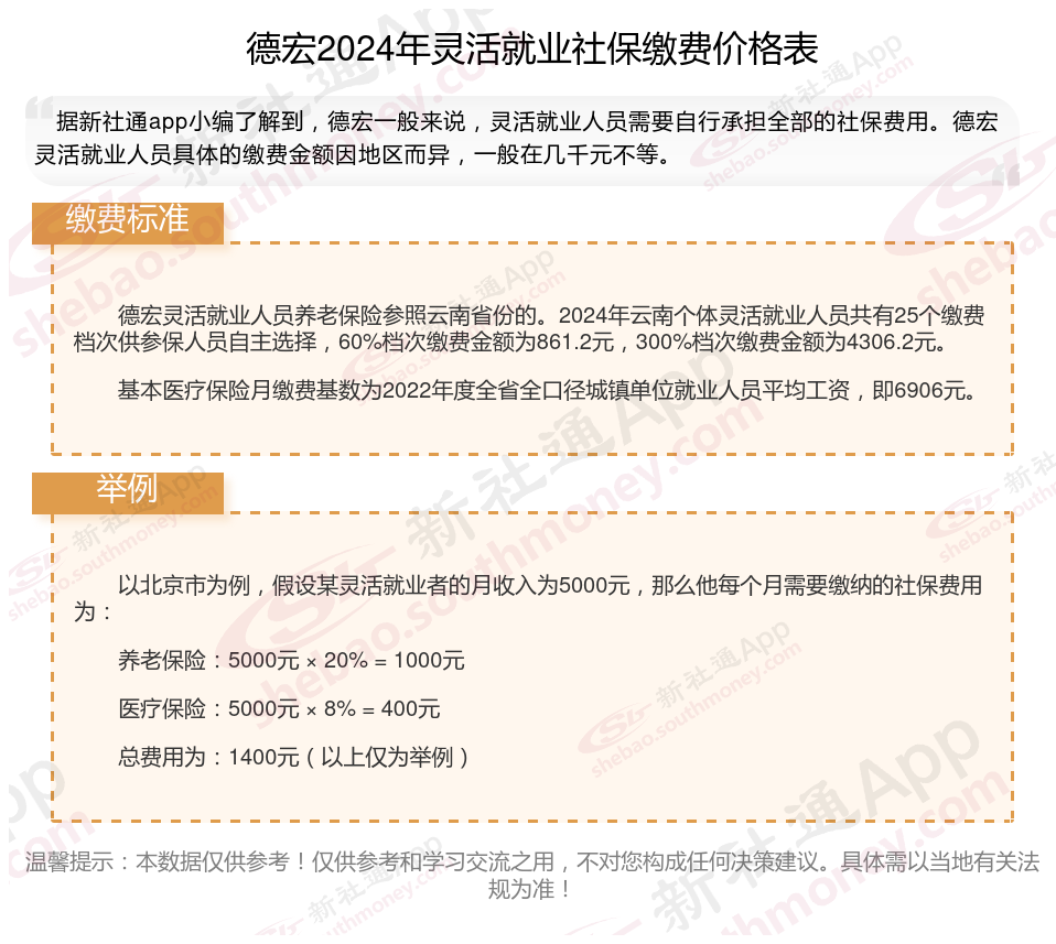 一、2024年德宏灵活就业社保缴费标准表 德宏灵活就业社保多少钱一个月?