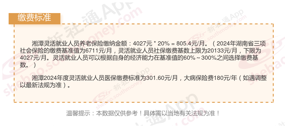 湘潭社保缴费多少钱?下表是2023-2024年湘潭社保费用明细参考,根据新社通app-社保缴费查询工具提供的最新数据如下: