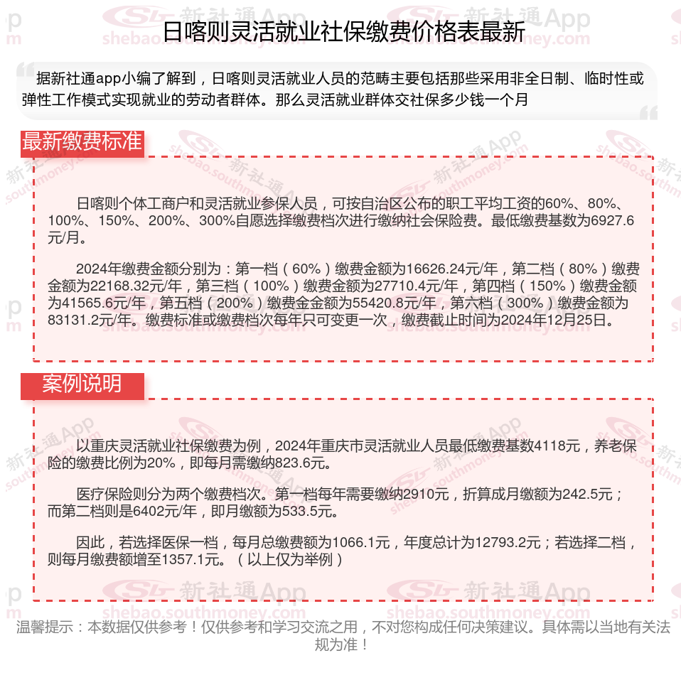 一、2024年日喀则灵活就业社保缴费标准表 日喀则灵活就业社保多少钱一个月?